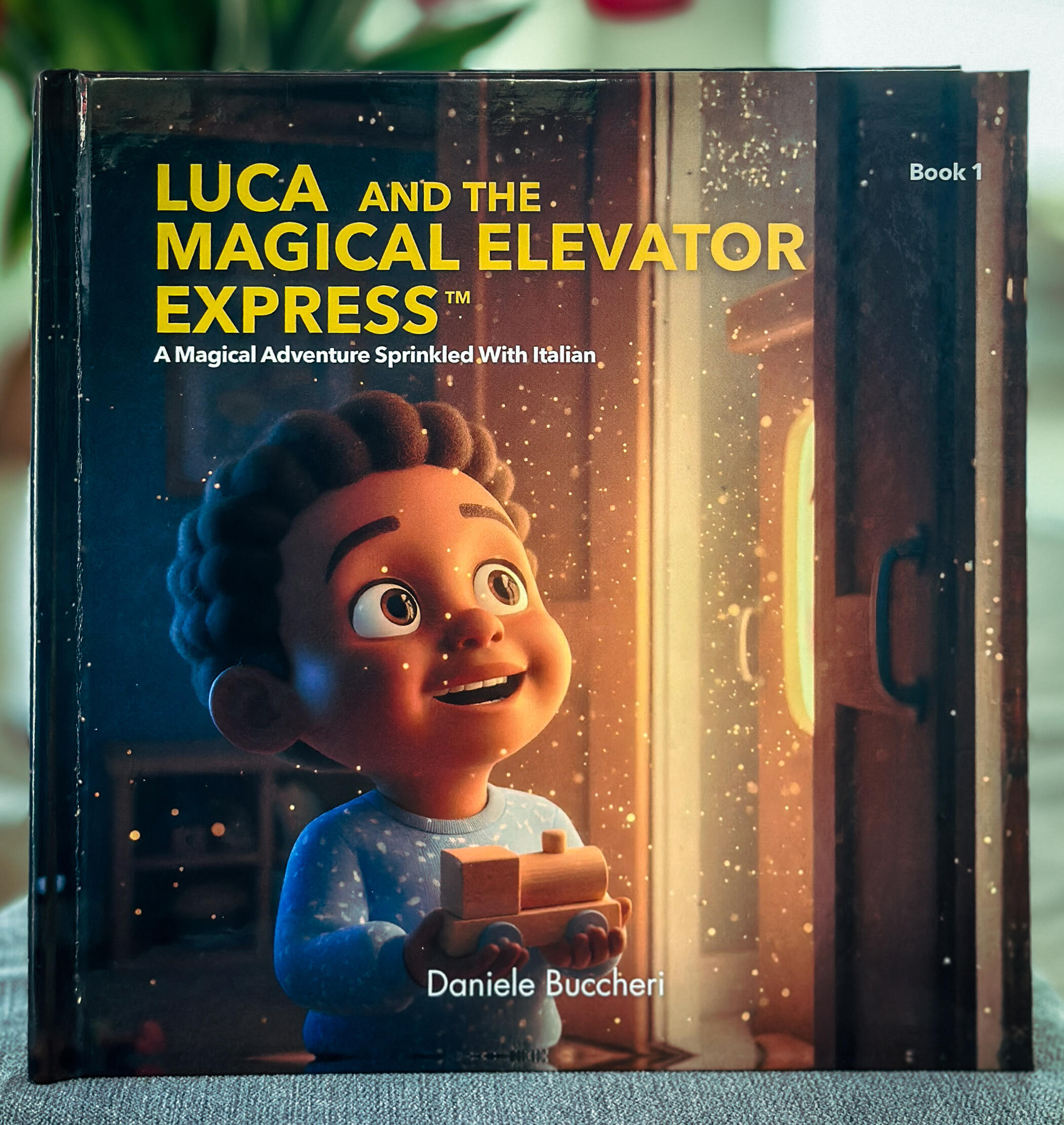Ciao! I’m Daniele — an Italian papà raising my little boy far from Italy.Every night before bedtime, Luca and I share a little magic: tiny wooden trains rolling on the carpet, sleepy giggles, and stories whispered in both English and Italian. I’ve always hoped he could stay connected to my language and heritage… and keep practicing Italian in a fun, loving way.There’s something else special about Luca: he adores trains and elevators.He can spend entire afternoons pressing buttons, watching doors slide open, and making his trains choo-choo across the floor with pure joy.So one night I wondered… what if I combine the two things he loves most?Trains + Elevators = LevoTrain, a magical “Elevator Express.”And that spark became this story — a cozy tale inspired by Luca’s challenge of falling asleep, transformed into a magical journey where bedtime becomes the doorway to beautiful adventures.And this is only the beginning.