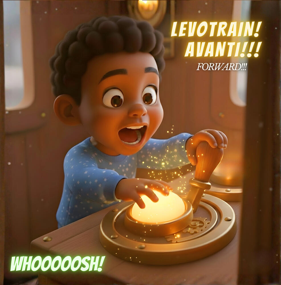 Ciao! I’m Daniele — an Italian papà raising my little boy far from Italy.Every night before bedtime, Luca and I share a little magic: tiny wooden trains rolling on the carpet, sleepy giggles, and stories whispered in both English and Italian. I’ve always hoped he could stay connected to my language and heritage… and keep practicing Italian in a fun, loving way.There’s something else special about Luca: he adores trains and elevators.He can spend entire afternoons pressing buttons, watching doors slide open, and making his trains choo-choo across the floor with pure joy.So one night I wondered… what if I combine the two things he loves most?Trains + Elevators = LevoTrain, a magical “Elevator Express.”And that spark became this story — a cozy tale inspired by Luca’s challenge of falling asleep, transformed into a magical journey where bedtime becomes the doorway to beautiful adventures.And this is only the beginning.